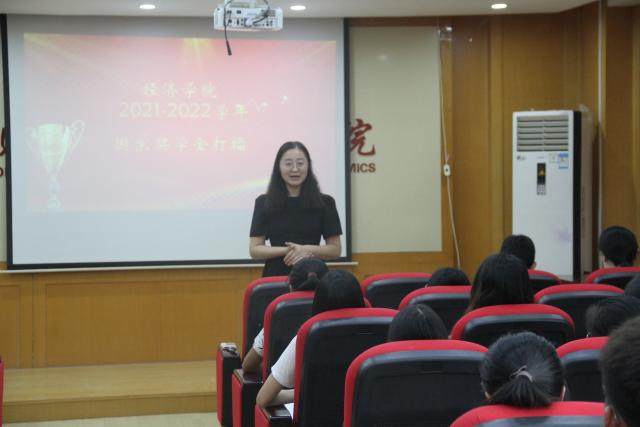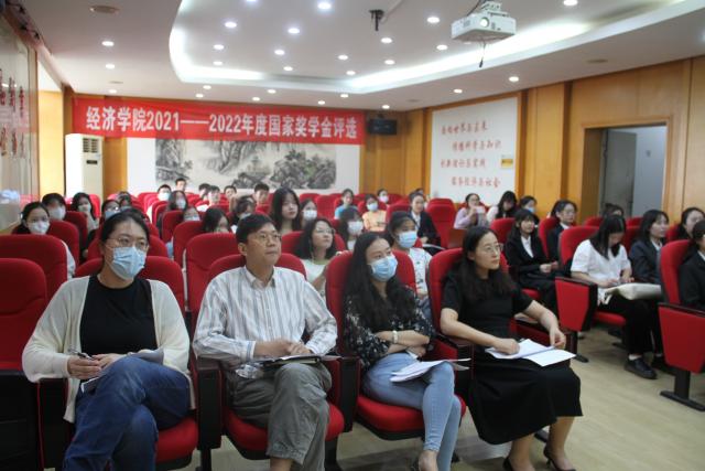 9月21日下午,经济学院于蛟桥园北区综合楼718会议室举办2021-2022学年国家奖学金打擂,经济学院党委副书记远翠平、团委书记万婧怡、学工办副主任吴佩芹、辅导员钟义鹏出席本次活动。