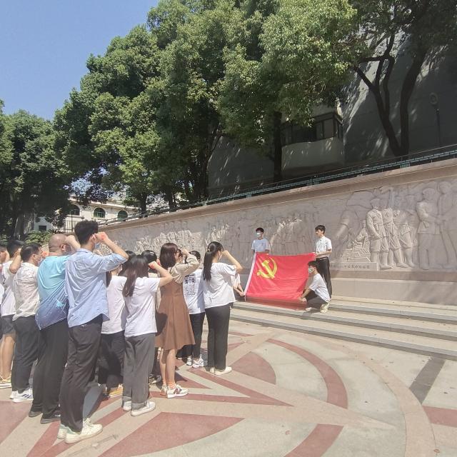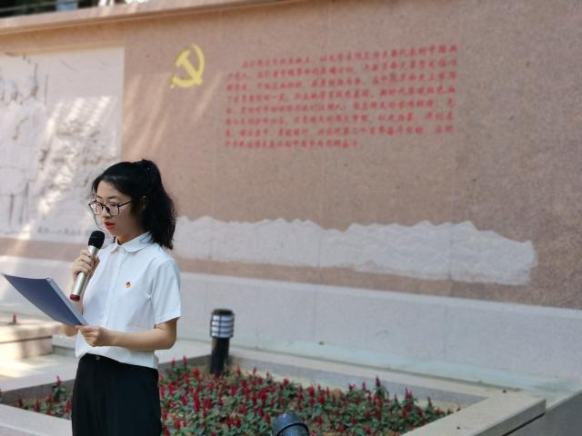随后,全体党员同志在鲜艳的党旗前进行集体宣誓。晴空万里,艳阳高照,党员同志们用最洪亮的声音说出自己的名字,每一位党员都将永葆初心、践行誓言。在党的旗帜下,党员代表袁子涵同志进行了热血沸腾的演讲;党员代表汪永航和胡嘉钰为大家带来了诗朗诵《烈士的丰碑》:“我们不能忘记,烽火的前线有你们英勇的身影,硝烟弥漫的战场有你们染的风景……”。同学们在激昂的演讲中、在悲壮的诗歌中穿越年轮,看硝烟中的青春模样,看坚守中的初心使命,看浴血奋战后的山河无恙。
