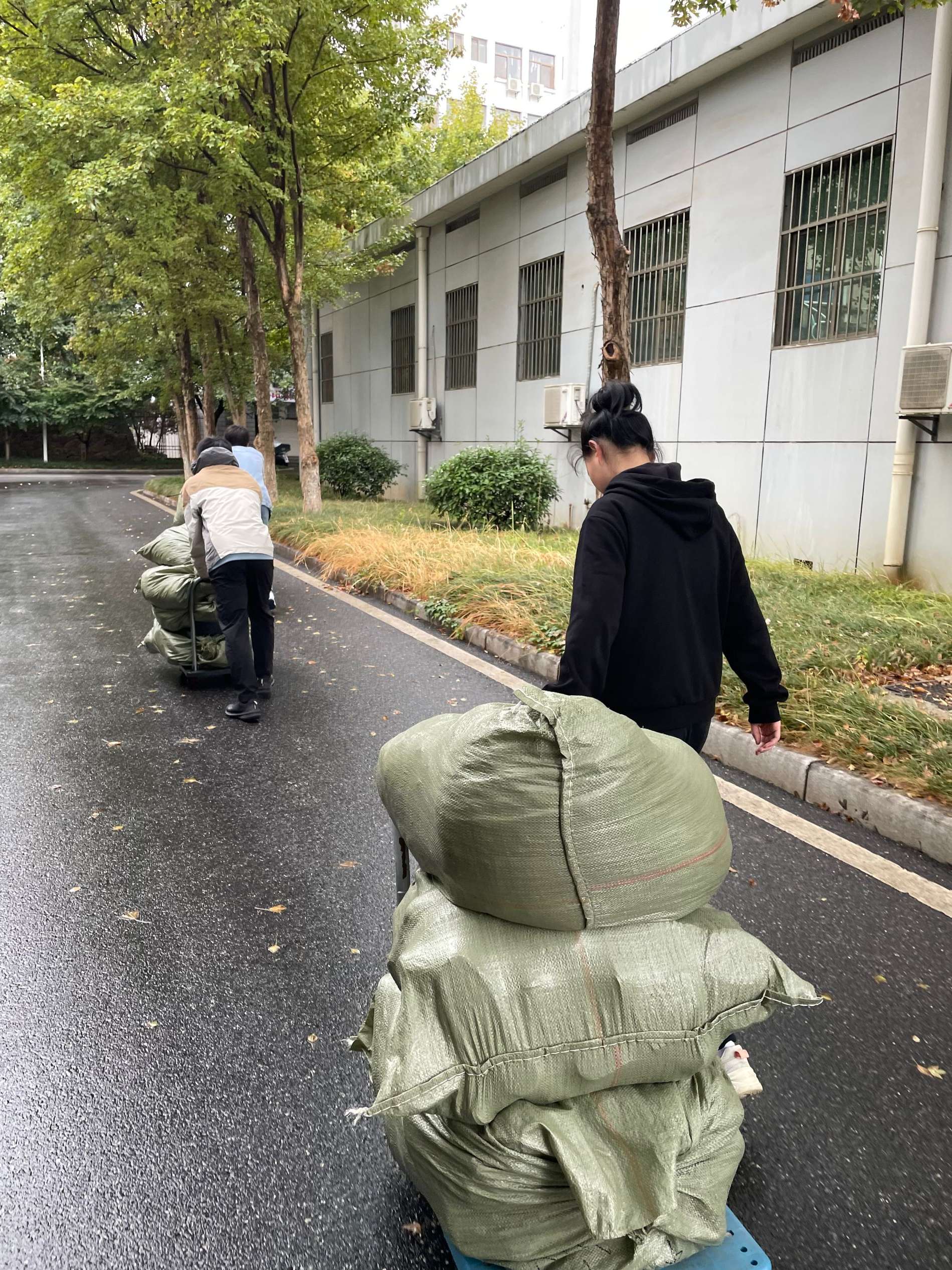9日早上9点30,在毛毛细雨中的青协工作者克服困难,将回收的军训服运送到了指定地点进行统一整理,至此回收军训服的活动圆满结束。