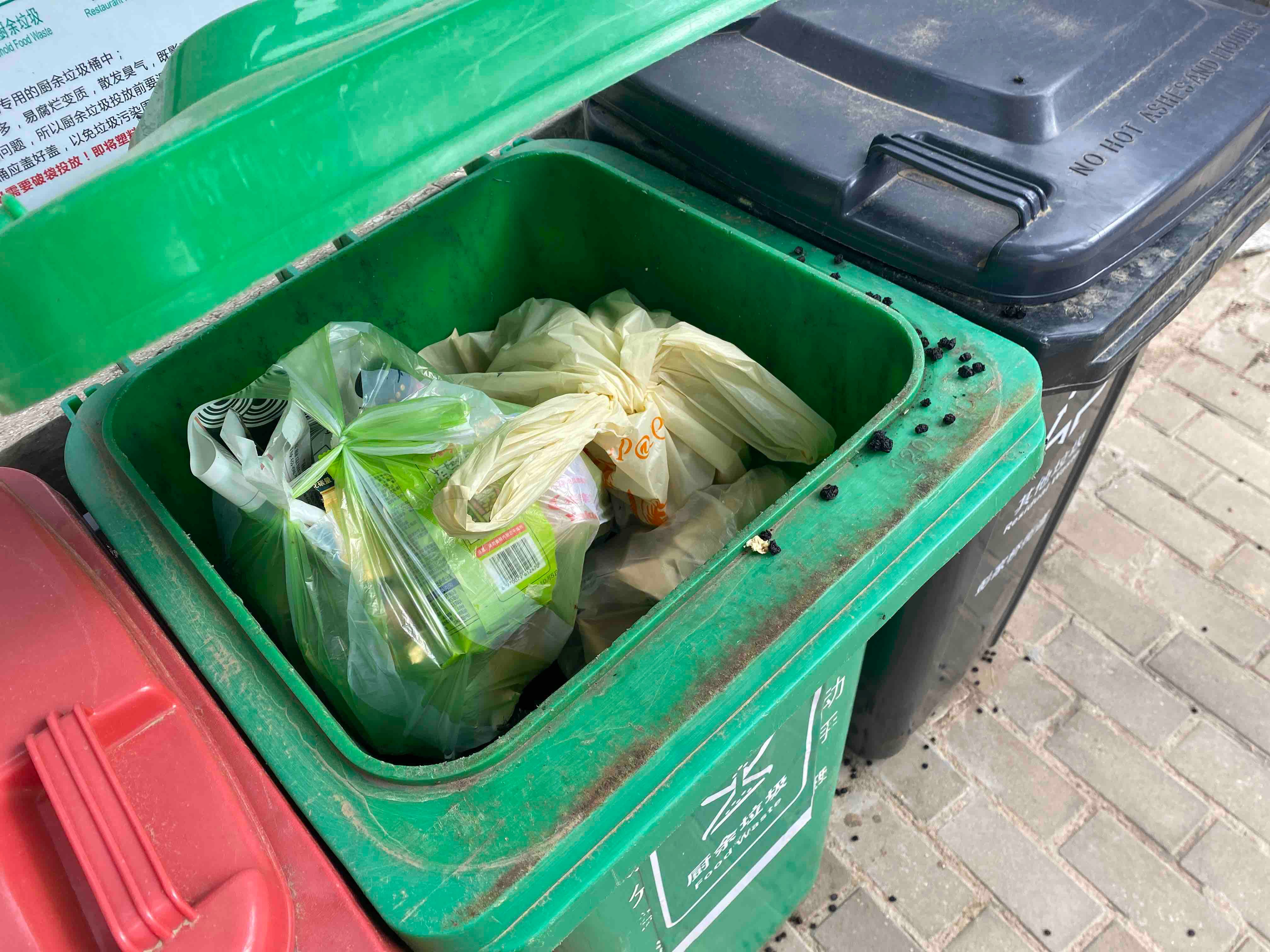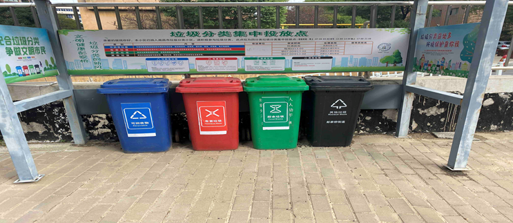 志愿者们到自己负责的校区查看垃圾桶内垃圾分类的情况,并拍摄各方位视角上传,并对该小区垃圾分类情况进行概括和总结。而志愿者们在查看小区内垃圾分类情况后,发现大部分垃圾桶内都存在垃圾混合投放情况,周边环境大都一般。垃圾投放点大都只有垃圾桶这一个投放点。
