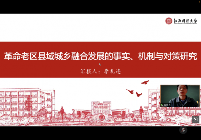 李礼连老师进行了《革命老区县域城乡融合发展的事实、机制与对策研究》主题报告,提出在中国城乡二元结构背景下,县域作为国家基本治理单元,革命老区是全面推进县域城乡融合发展的重要组成部分,结合二十大报告、中央一号文件精神、《“十四五”新型城镇化实施方案》等政策意见,分析革命老区县域城乡融合发展的特征事实、理论机制并进行实证检验,探究革命老区县域城乡融合发展的实现路径。