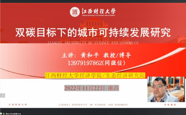 随后研讨会进入到主题演讲环节。黄和平教授首先进行了《双碳目标下的城市可持续发展研究》主题报告,基于我国社会经济的快速发展带来能源高消耗,而城市是能源消费与碳排放的主要贡献者的时代背景,提出了城市能源消费与碳排放框架。立足能源消费碳排放与经济发展的关系研究,能源消费与碳排放的公平性研究,碳达峰与碳中和相关研究,从整体论与系统论视角,构建了城市能源代谢分析框架,研究紧跟前沿,逻辑缜密。