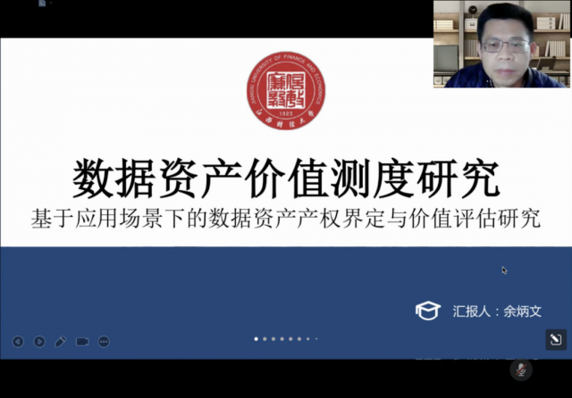 余炳文副教授作了《基于应用场景下的数据资产产权界定与价值评估研究》报告,以现实为导向,符合十四五数字经济规划和建设高标准体系方案,围绕数据资产产权界定、影响数据资产价值的内部因素、数据资产价值测度模型的构建与优化三个重点问题进行数据资产的价值测度分析。