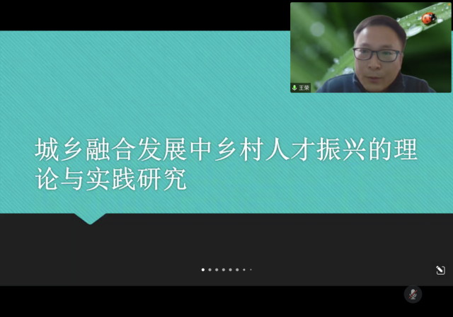 王荣老师作了《城乡融合发展中乡村人才振兴的理论与实践研究》报告,结合二十大提出的的乡村全面发展的基本战略,特别是二十大重点提出人才振兴的基本要求,研究在城乡融合发展的框架中鼓励人才流入乡村,为乡村提供人才支撑的理论机制与实施路径。从发达国家乡村实现现代化中人才流入规律,我国农村人才流失与现实情况,城乡融合发展与乡村人才振兴深度剖析,城乡经济固化中乡村人才振兴的困难,乡村人才振兴基本路径五大方面展开论述。