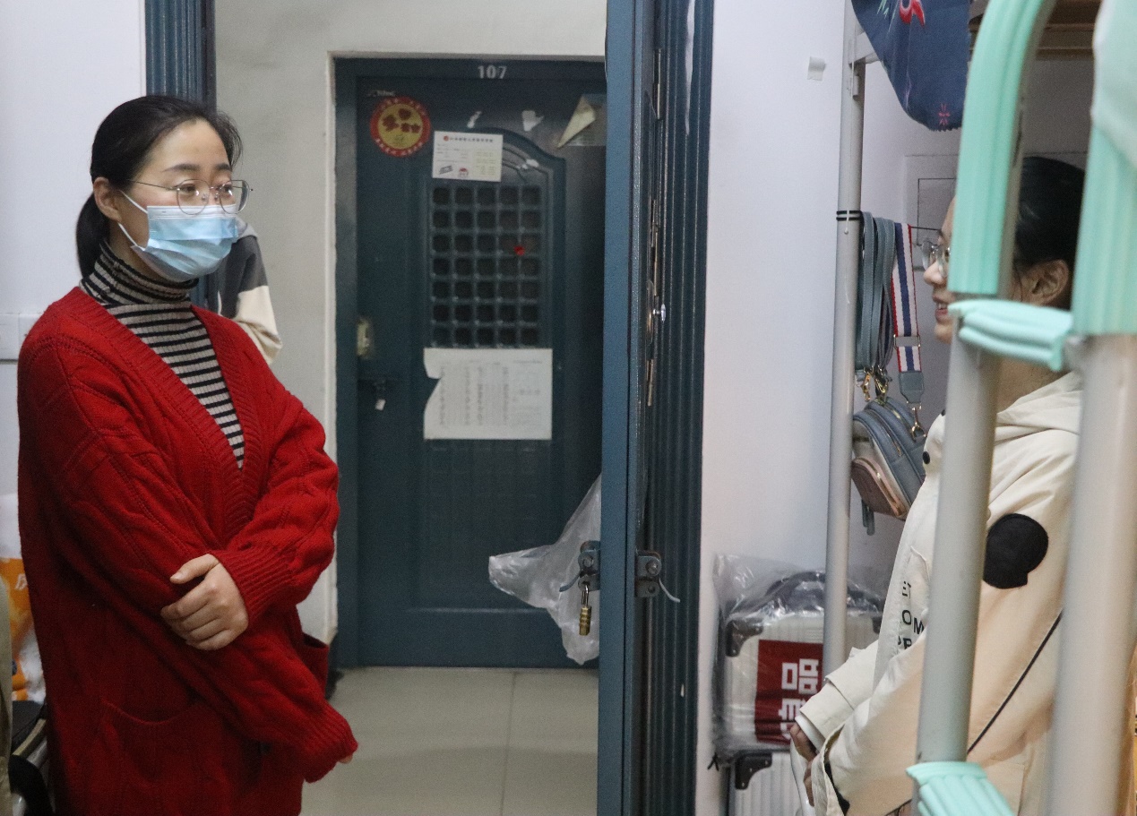 走访中,老师们着重对学生宿舍的卫生环境、安全隐患、冬季传染病预防等方面进行了检查,党委书记邹春发向同学们解释和说明了近期学校疫情防控政策和要求,嘱咐同学们严格遵守学校疫情防控管理规定,保持宿舍卫生、加强个人防护,共同维护学校疫情防控工作大局。