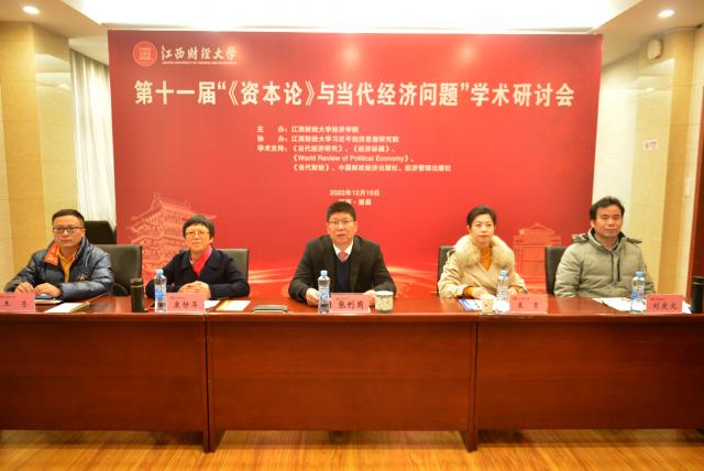 12月10日,第十一届“《资本论》与当代经济问题”学术研讨会在南昌顺利召开。本次会议由我院主办、习近平经济思想研究院协办,《当代经济研究》《经济纵横》《World Review of Political Economy》《当代财经》、中国财政经济出版社、经济管理出版社提供学术支持。会议采取线下线上同步进行的方式召开,线下会场设在我院815会议室,线上线下共计180余人参会。本届研讨会的主题为《<资本论>与中国式现代化》,旨在进一步学习领会党的二十大报告提出的新思想、新观点和新论断,推动中国特色社会主义政治经济学的创新发展和本领域学者的学术交流。院长张利国教授出席线下论坛并致欢迎词。
