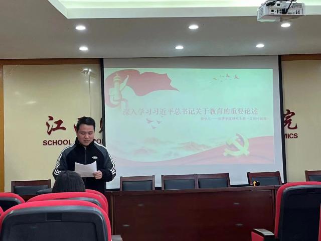 为进一步引导党员学习党的二十大会议精神和习近平总书记的重要讲话精神,经济学院研究生第一、第二党支部于2023年2月21日在北区综合楼718会议室联合开展了主题为“筑牢思想基础,严肃政治生活”的党日活动。会议由第一党支部胡旭阳主持,研究生第一党支部书记谢尔艾力,第二党支部书记杨柳及经济学院全体研究生党员共同出席。