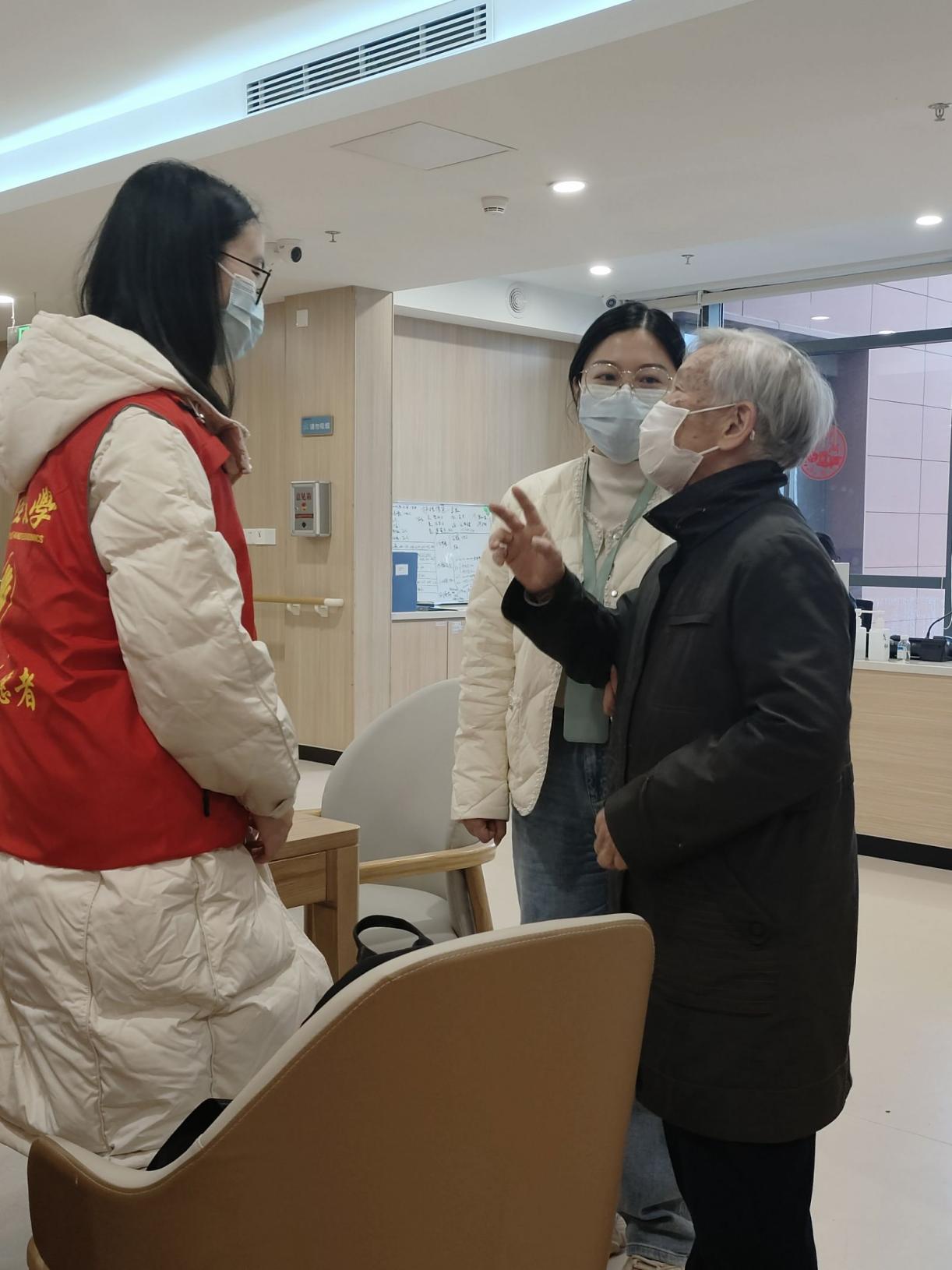志愿者们和老人交谈的同时,认真地倾听老人们讲述自己的人生经历。通过交谈,我们了解到了改革开放前后共产党的不懈奋斗和无私奉献带给了我们如今和平且幸福的生活。