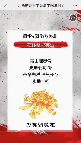 清明节源自于早期人类的祖先信仰与春祭礼俗,是中华民族最隆重盛大的祭祖大节。4月5日至4月7日,经济学院的志愿者们开展“传承英烈精神 奋进伟大征程”清明节线上祭扫活动。本次活动旨在加强爱国主义教育、弘扬革命精神、激荡家国情怀、传承血脉基因。
