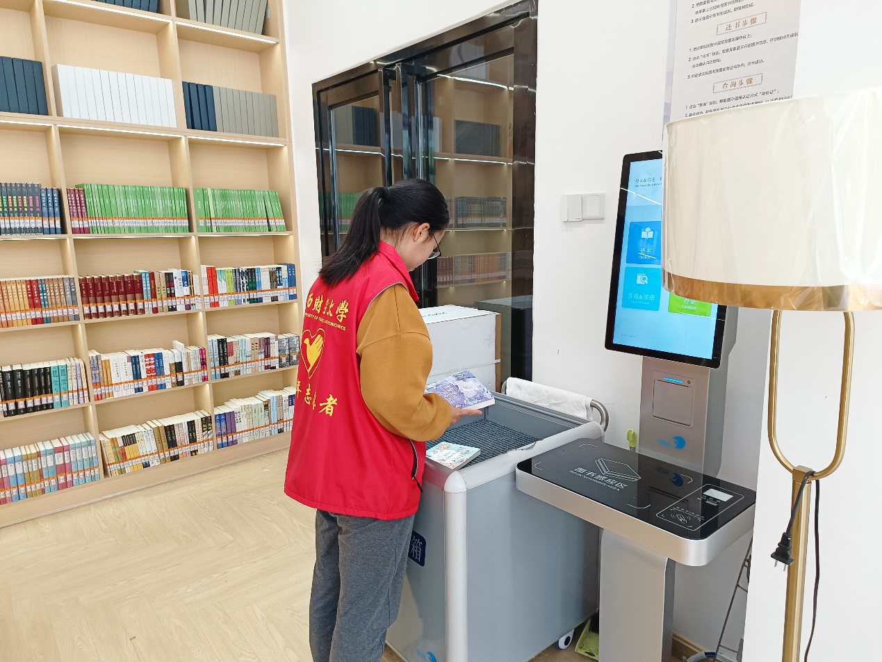 活动当天,志愿者们准时来到书房。在工作人员的介绍和耐心指导下,大家很快便了解了孺子书房的总体布局情况、志愿服务范围和图书分类上架、激活阅读卡、服务引导等基本操作。志愿服务正式开始后,志愿者们便以饱满的热情迅速投入工作,将新到的图书进行分类,耐心找出放错类的图书,一一放回正确的位置,并对屋内公共区域进行清理打扫。同时,志愿者们帮助何引导第一次来的读者办理借书证,自助借阅图书,并耐心解答读者问题。