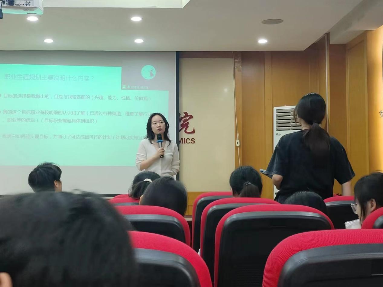 通过与学生的积极互动,刘君男主任介绍了如何写好职业生涯规划书。她谈到要从自我与外界的探索,规划行动和评估调整三个维度进行展开,主要关注于对自我与职业世界的探索。在自我探索中要结合自己过往的经历,通过爱兰德职业兴趣测评、mbti性格测评、职业能力倾向测评等测评工具将性格与兴趣做到更好匹配。 刘君男主任详细解答了同学们对规划书内容和工作分配之间的疑惑,同学们受益匪浅。相信经过本次培训,同学们可以对于职业生涯规划有更清晰的认知,对大赛内容的撰写有更明确的修改方向,最终在决赛中获得满意的成绩。