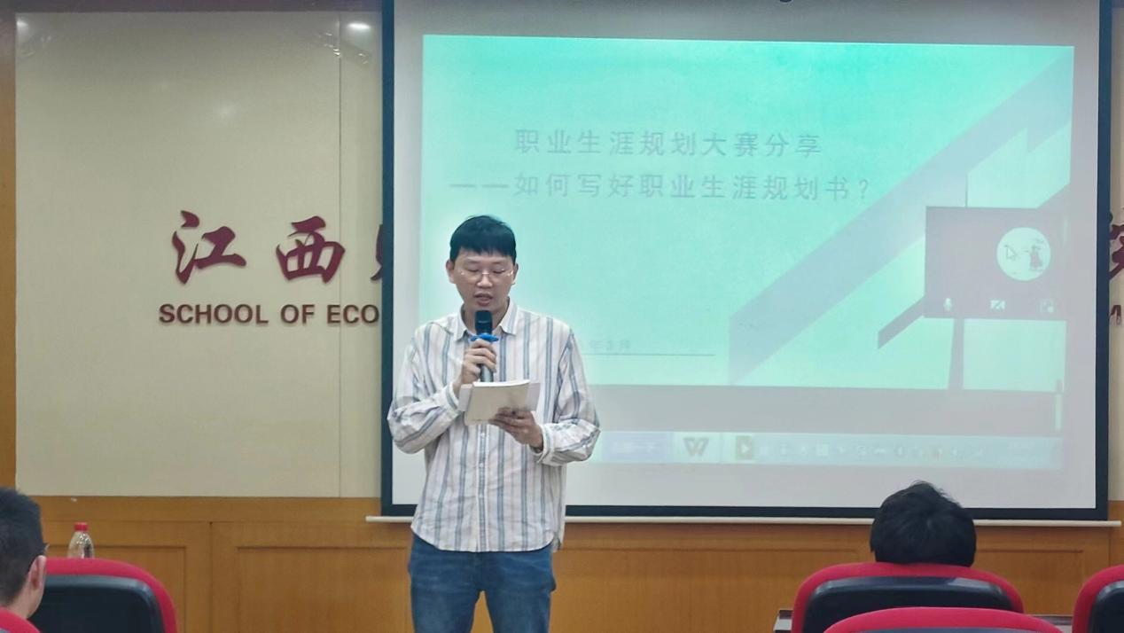 4月19日下午,经济学院于北综718召开职业生涯规划大赛分享会。本次分享会请到了招生就业处大学生就业服务中心的刘君男主任进行分享,会议由经济学院辅导员钟义鹏老师主持。 刘君男主任首先介绍了职业生涯规划大赛的形式与内容,让大家对职业生涯规划大赛的流程与规范有了基本的了解。