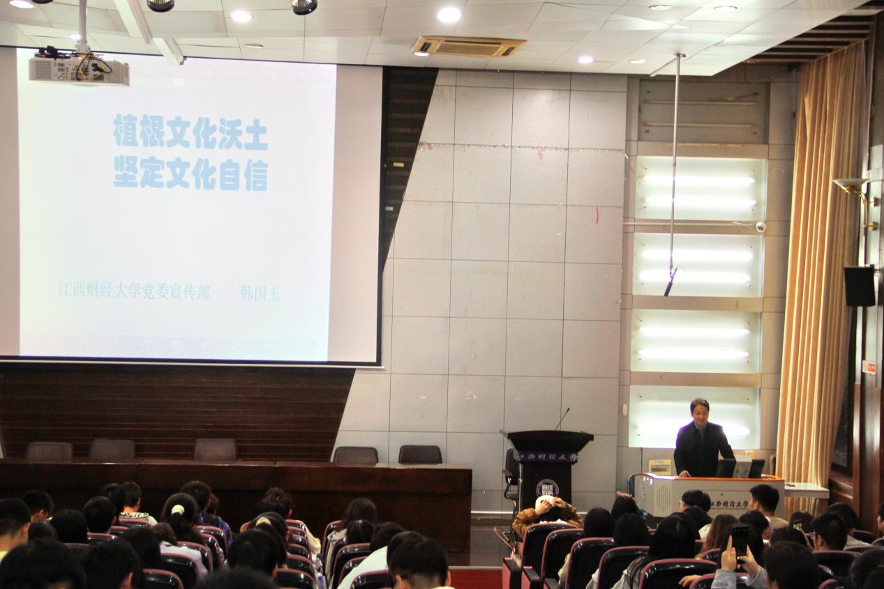 4月22日晚,经济学院于研究生报告厅开展第二十四期入党积极分子培训班第八讲,主题为“植根文化沃土,坚定文化自信”,由校党委常委、宣传部部长韩国玉讲授。