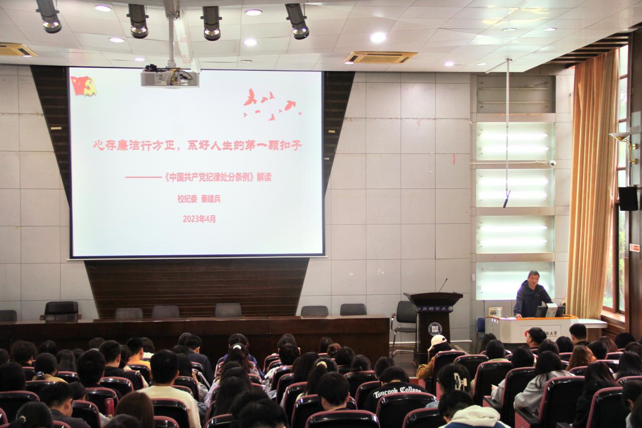 4月22日下午,经济学院于研究生院报告厅开展第二十四期入党积极分子培训班第七讲,主题为“心存廉洁行方正,系好人生的第一颗扣子”,由校纪委监督检查室主任秦建兵老师讲授。