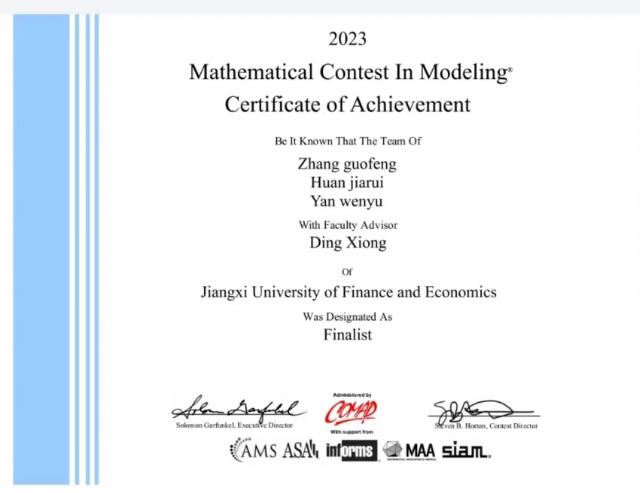 喜报|我院学子喜获2023年美国大学生数学建模竞赛特等奖提名奖