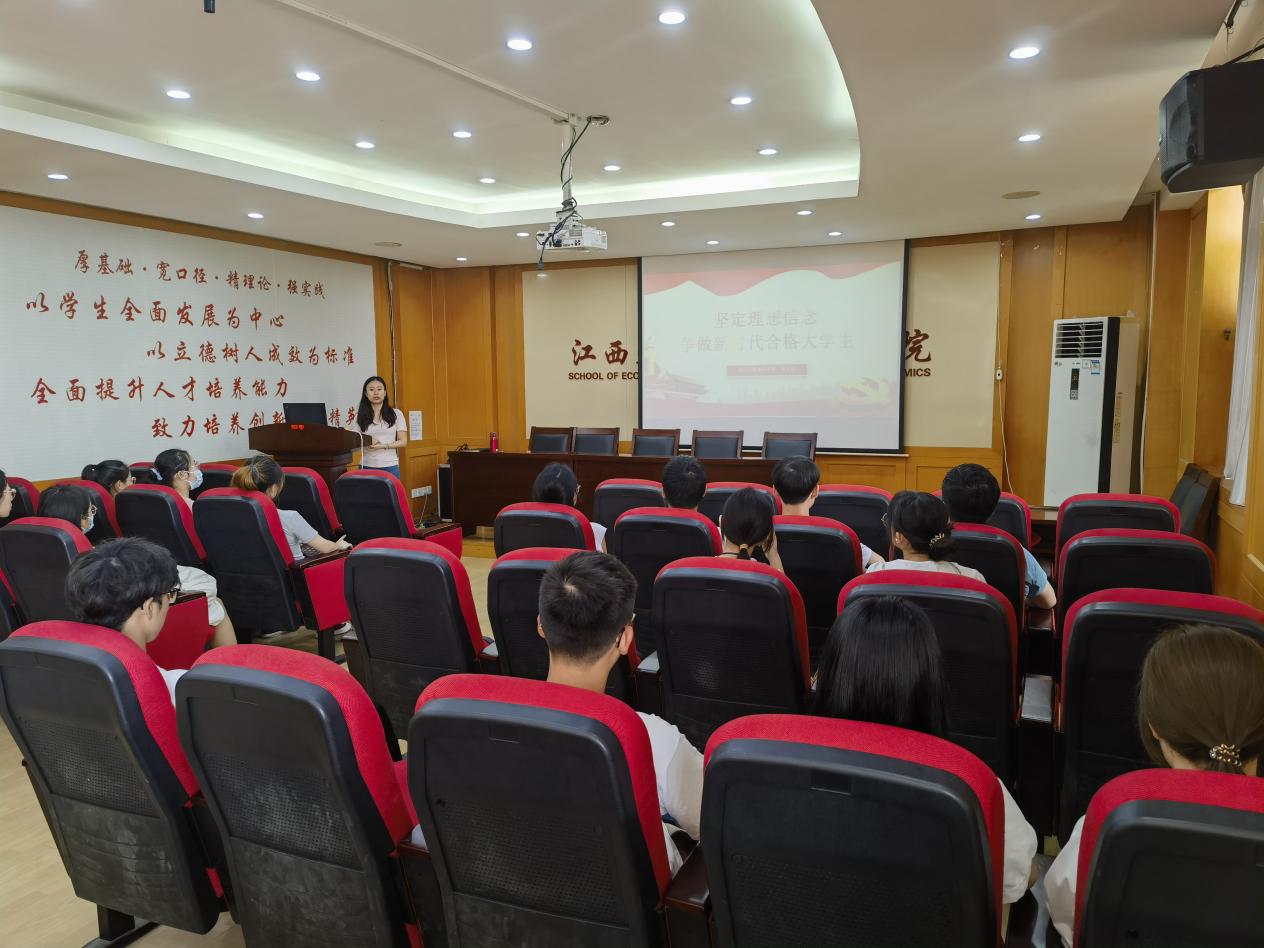 为深入推进学习贯彻习近平新时代中国特色社会主义思想主题教育,鼓励青年学子勇担时代重任,5月31日,经济学院本科生第一党支部于北综718开展“坚定理想信念,争做新时代合格大学生”主题教育专题党课。由支部书记万婧怡主讲,支部全体党员参加。