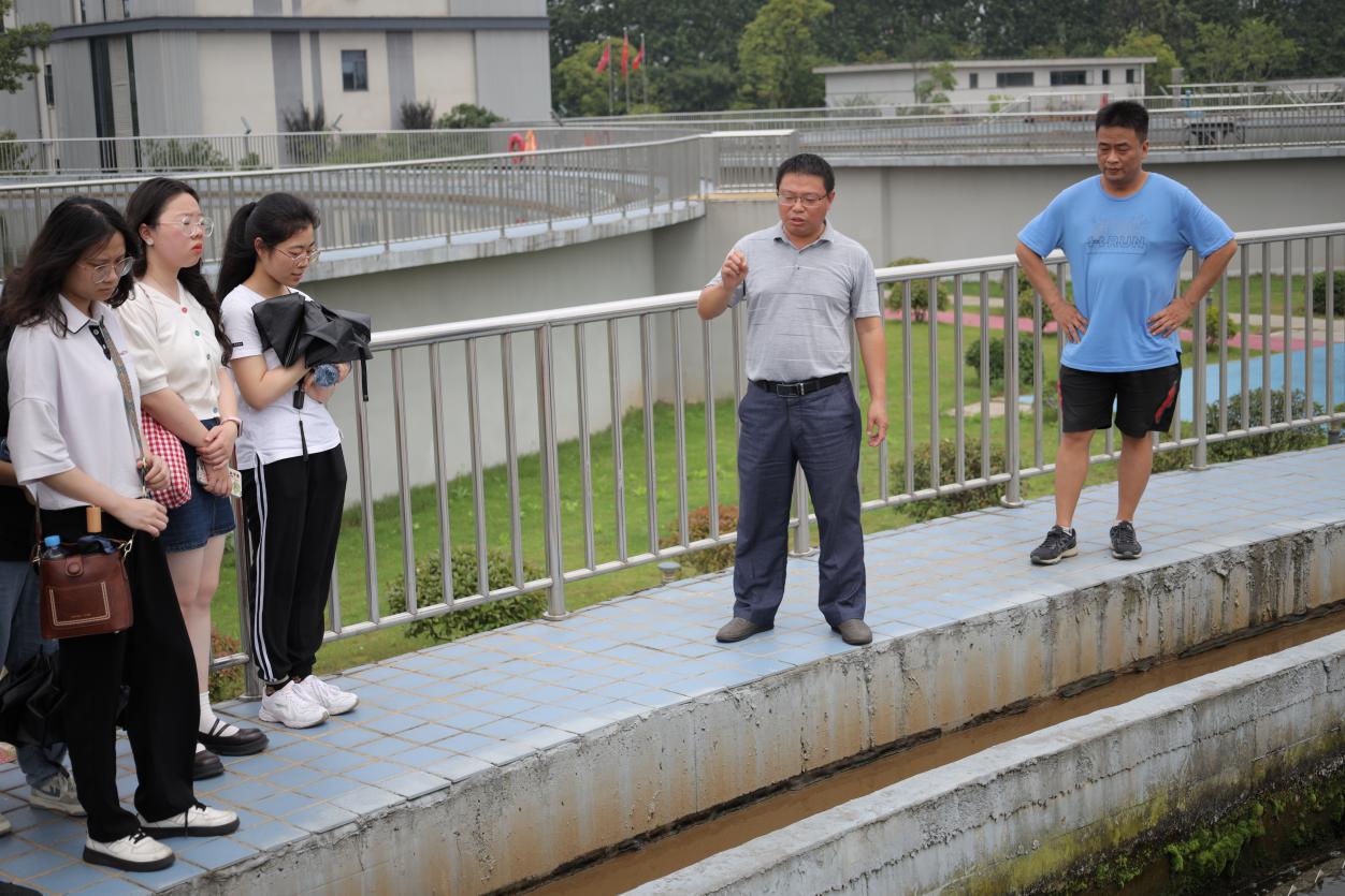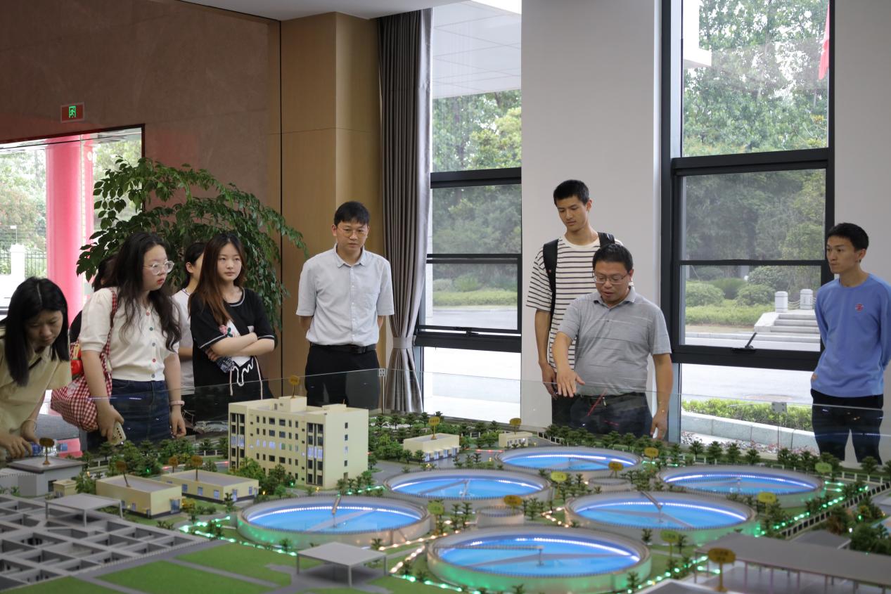 到达厂区后,在江西洪城城北污水处理有限公司曾玉华书记的讲解下,同学们首先通过模型了解了污水从进水到出水的整个处理工艺流程。随后,大家近距离参观了厂区的粗格栅、提升泵房、沉沙池、生化反应池、沉淀池、消毒池、出水泵房等一系列污水处理设备和处理过程。这些复杂的过程并不需要花费大量的人力完成,而是由工作人员在中控室通过电脑远程操控,大大提高了污水处理的效率和质量。
