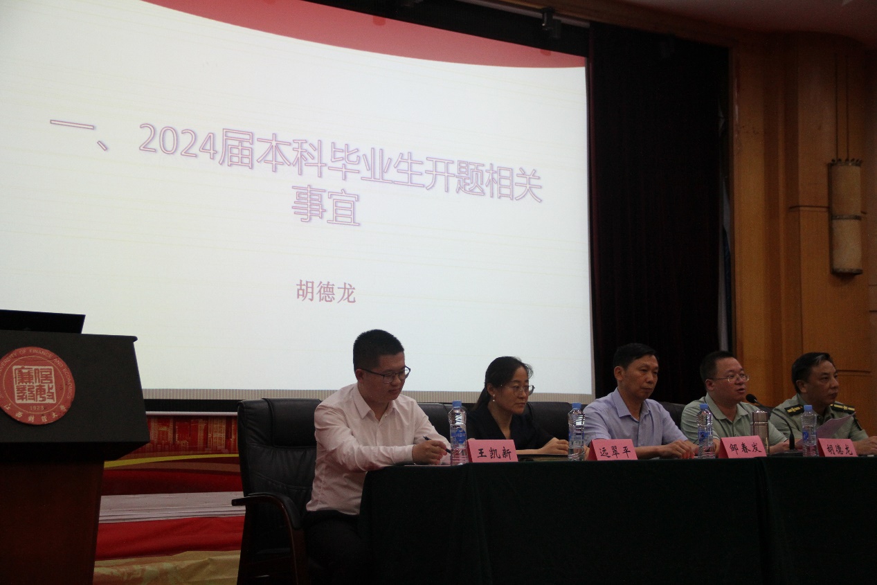 副院长胡德龙介绍了毕业论文开题的相关事宜。他围绕论文选题、文献综述、中期检查、论文撰写、查重要求、答辩等对毕业论文的各个环节进行了简要说明。强调在未来要理论联系实际,用所学知识分析社会热点,解释经济现象,总结经济规律。鼓励学生在毕业论文的选题上选择新颖的科研课题,多与导师交流沟通,注重创新,可以结合竞赛项目进行选题。运用经济学理论工具,体现学科特色等。