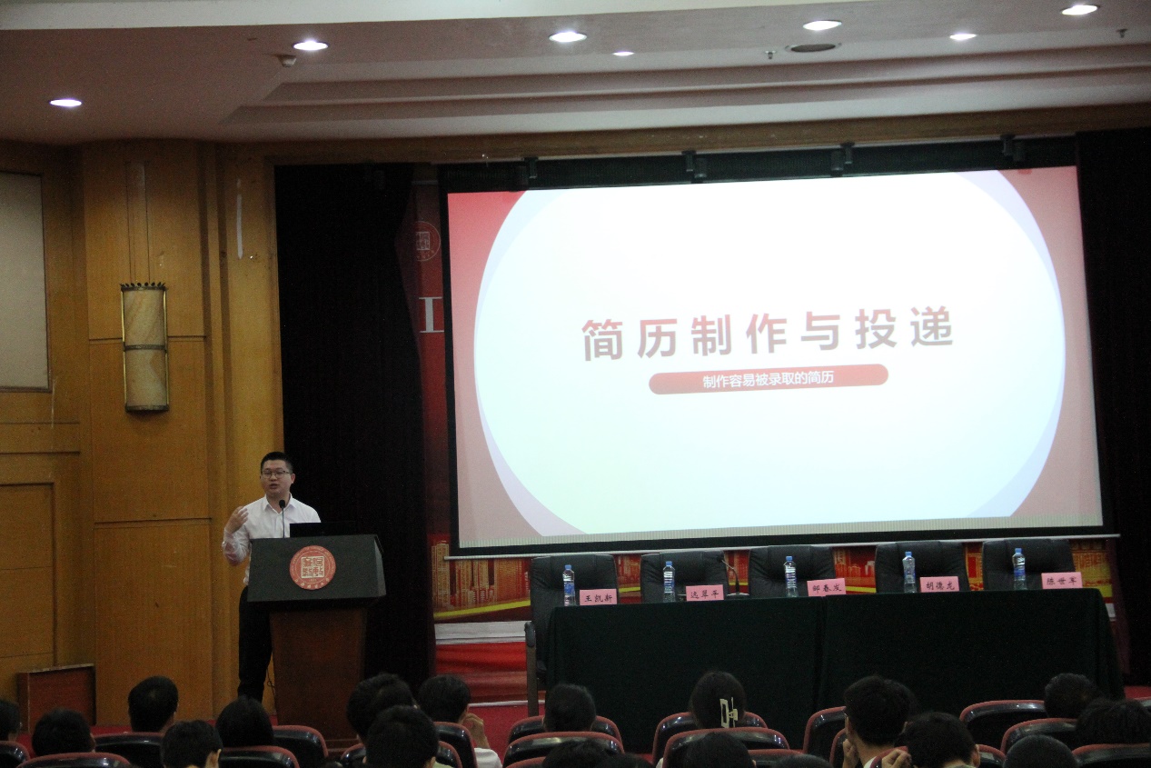 就业专员钟义鹏以“解读就业形势,树立正确就业观”为主题用具体的数据为学院毕业生做了就业去向分析,宏观角度上为毕业生未来方向提出了建设性意见。