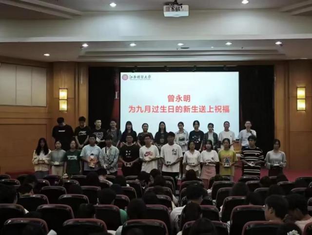 曾永明副院长为九月过生日的新生赠送生日贺卡和生日蛋糕。