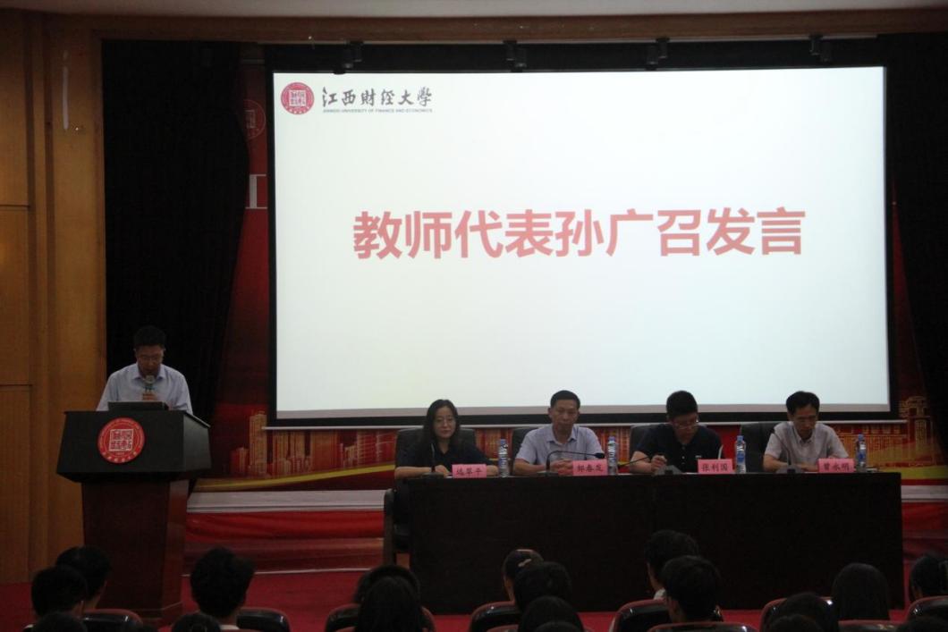 教师代表孙广召结合自己的经历, 鼓励同学们尽快转变思维,提高经济学素养,全方位地提升和磨炼自己。