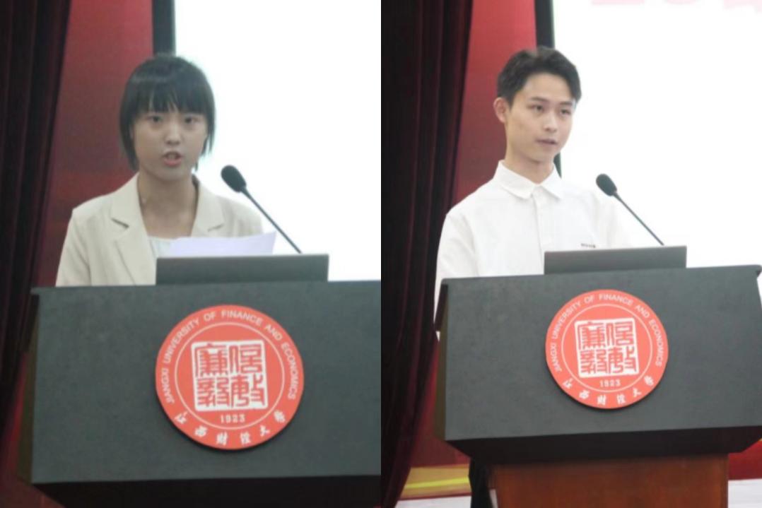 研究生新生代表余长林、本科新生代表张希言表达了在学校书写人生新篇章的态度与决心,表示要争做对社会有贡献的新时代大学生。