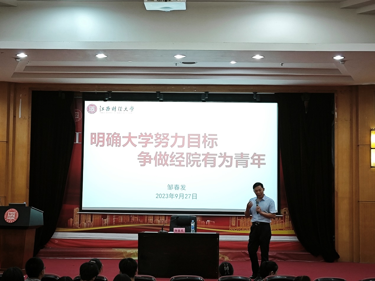 开学典礼教育,仪式感开启大学航程。学院举行了仪式感满满的开学典礼,引导新生入好门、开好局、起好步。院长张利国代表学院全体师生对2023级新生的到来表示热烈的欢迎。对学院的历史、专业、师资力量、科研成果等等方面对学院情况做了详细介绍,并对新生提出三点希望:一是希望同学们以“归零”的心态投入人生的新阶段;二是希望同学们规划好在江财的时光;三是希望同学们做“信敏廉毅”的江财人。党委书记邹春发介绍了学院的育人特色、学生在各类竞赛中的获奖情况以及我院学子勇于超越自我、不断追求进步的精神风貌,并鼓励同学们敢于有梦、勇于追梦、勤于圆梦。会上,全体师生为9月份过生日的同学送上生日祝福,曾永明老师为27名同学赠送了生日蛋糕和祝福卡片。