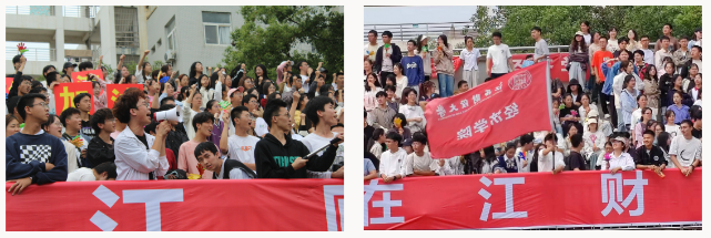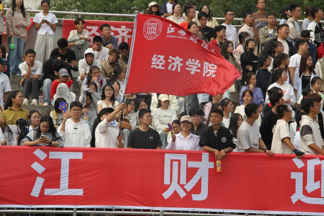 欢呼与拼搏同在,青春与热血共燃。观众席上一次次的特色表演,一声声的加油助威,与运动员们一起凝心聚力,共创辉煌,每一次呐喊都积蓄着力量,每一次尖叫都闪耀着光芒!在看台上,经济学院学生神采飞扬的青春活力,成为运动会一道亮丽的风景线。
