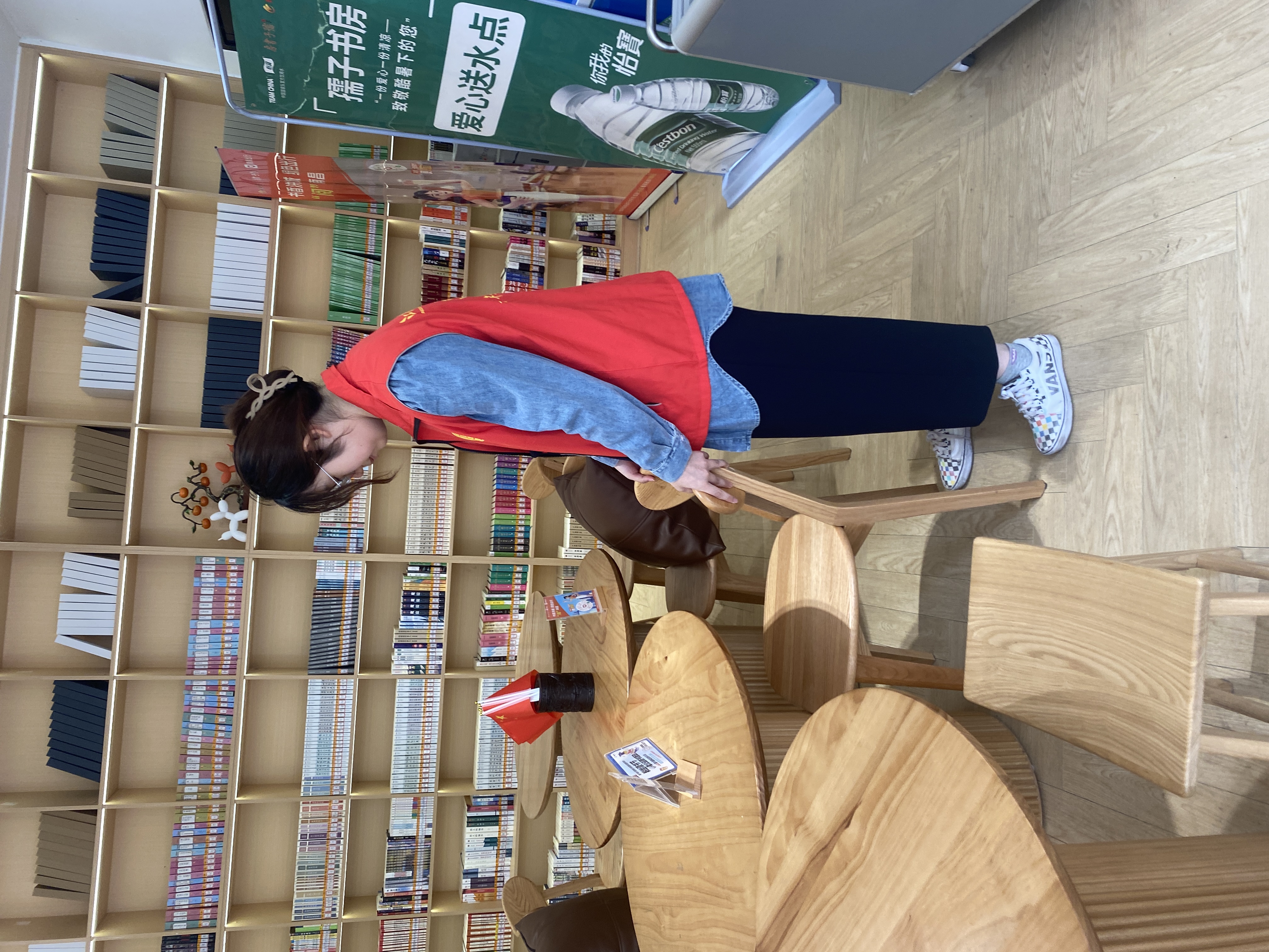 在半个小时的车程后,青年志愿者们抵达了孺子书房(凤凰洲黄河路馆),并按计划开启了书院活动之路。在书房里,志愿者们有条不紊的整理书籍、桌椅等。对摆放混乱的图书进行归类整理,并且按照图书的适用人群区分区域分开存放,将部分横七竖八的桌椅摆放整齐。