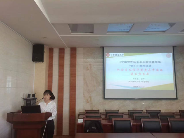 备课会中,刘丽丽老师选取了教材第三篇社会主义经济中的教学内容进行说课。刘丽丽说课准备充分、亮点纷呈,展现了《中国特色社会主义政治经济学》青年教师的风采。课程组陈富良、龚立新、罗雄飞、彭新万、刘爱文、彭武汉、封福育教授、课程负责人彭继权副教授及青年教师孙广召博士等参加说课活动并进行了点评。