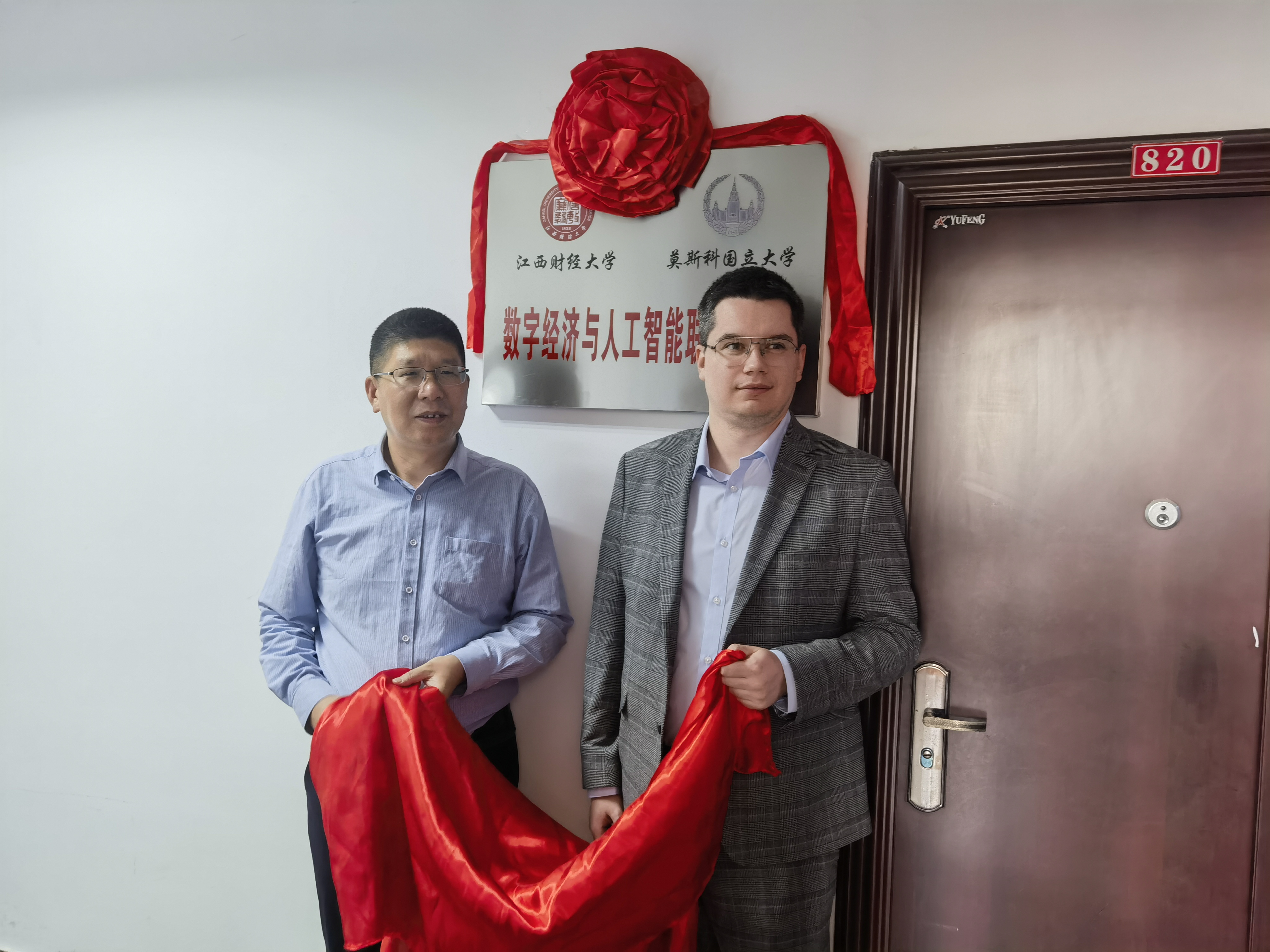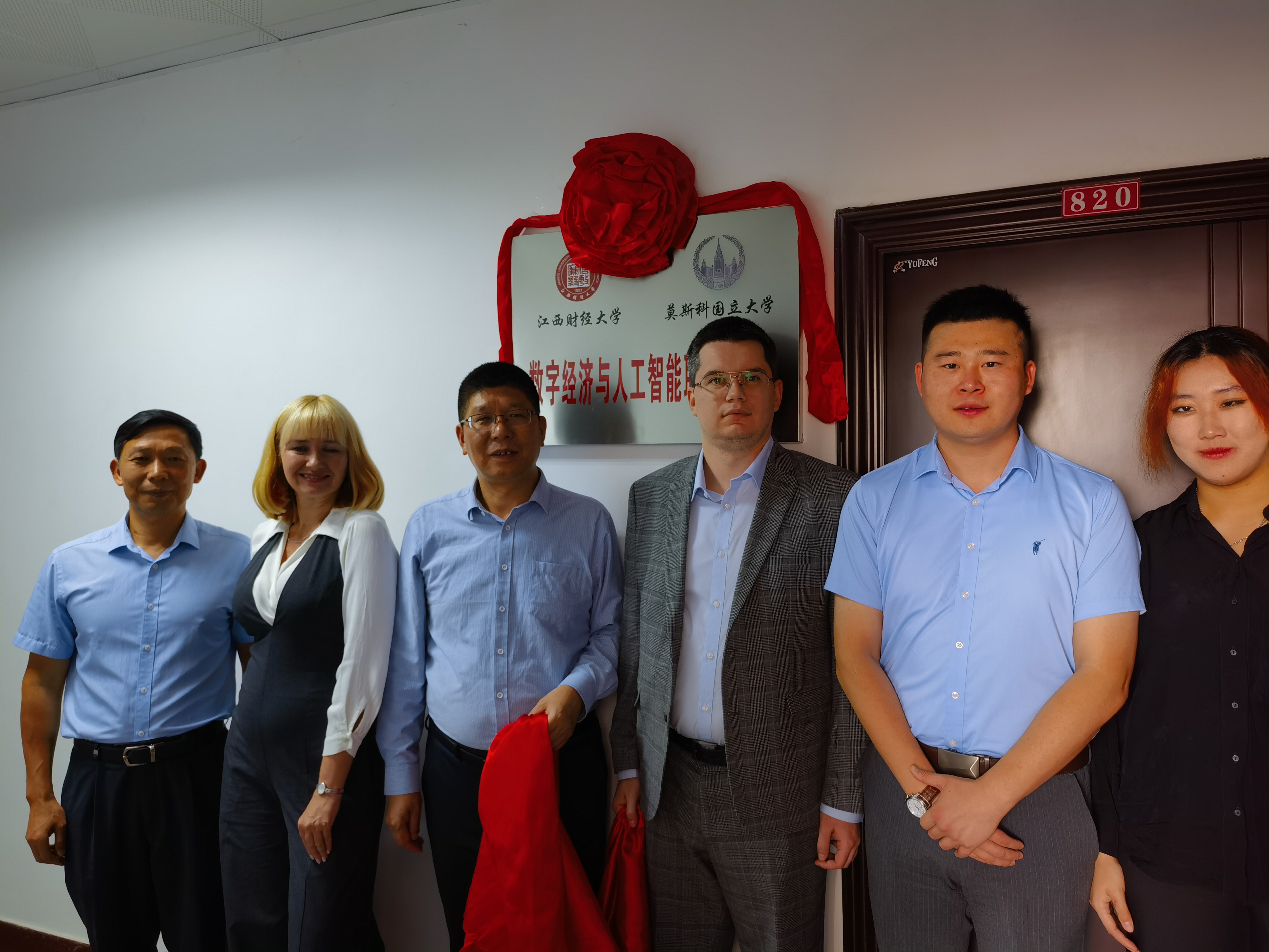莫斯科国立大学高等经济学院副院长阿拉酵母、教务办主任娜佳、经济学院院长张利国共同为研究院揭牌。双方表示,将依托江西财经大学—莫大数字经济人与工智能联合研究院进一步开展深度合作,依托双方自身的学科特色、学科优势,搭建两国高校学术合作交流的平台,在推动人才培养、教师互换、学生交流、科研合作等领域深度合作,推动国际科技合作,促进创新发展,同时希望共建双方共同推动江西财经大学—莫大数字经济人与工智能联合研究院的繁荣发展。