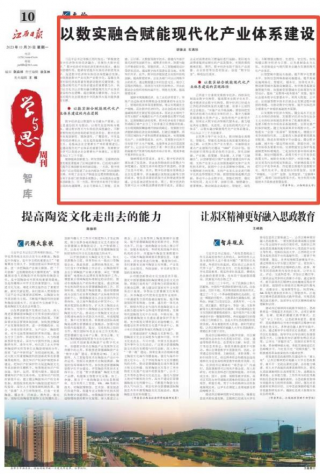 《江西日报》刊登我院胡德龙副教授的“以数实融合赋能现代化产业体系建设”的观点