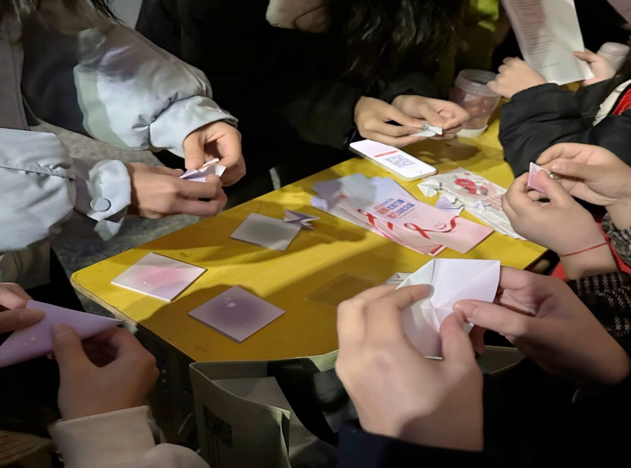 在活动过程中,经院的同学们表现出了极高的参与度和责任心。他们不仅认真听取了志愿者的讲解,还积极参与到艾滋病的宣传中,并且进行了防艾知识问答和爱心折纸挑战来领取小礼品,通过自身的力量,传递防艾知识,守护健康。
