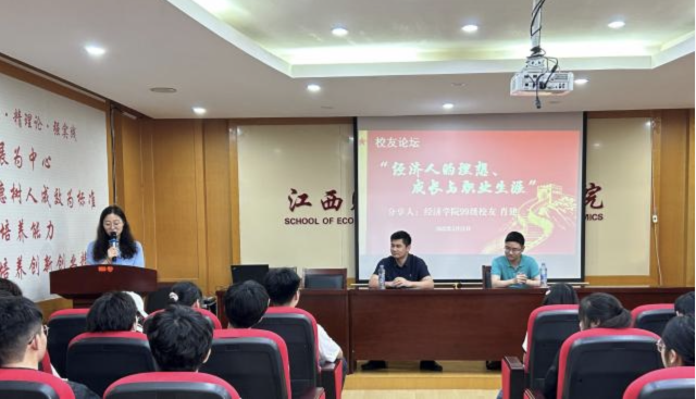 Alumni Forum held by the School of Economics On May 21, the School of Economics held an alumni forum and invited two outstanding alumni to return to their alma mater to share their stories of study, graduation, employment and entrepreneurial struggles, encouraging students to firmly believe in their ideals, carry forward the spirit of struggle, and contribute their youthful power with their youth and sweat to achieve the Chinese dream of great rejuvenation of the Chinese nation.