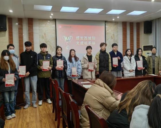 在“西域阳光助教”启动仪式中,各民族的两位同学成为一对,结下友谊,将在此后共同学习进步,我院领导对每组同学颁发了证书。