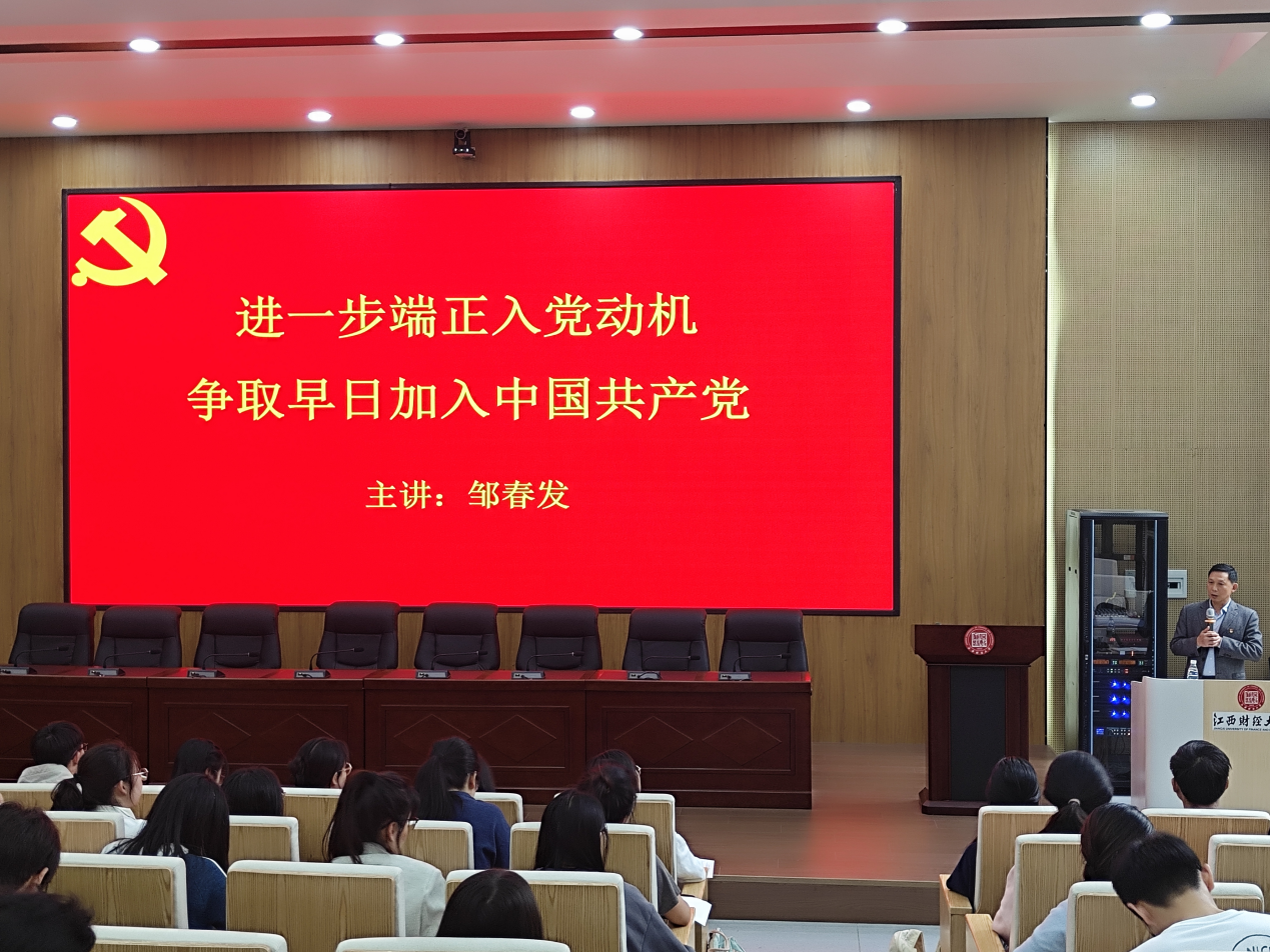淬炼初心使命,蓄足源头活水。为了进一步加强入党积极分子对党的基本理论知识系统学习,提高入党积极分子的理论水平,确保新党员的发展质量。2024年4月10日,经济学院于研究生院报告厅开展了主题为“进一步端正入党动机,争取早日加入中国共产党”培训班第一课,由经济学院党委书记邹春发讲授。