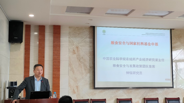应我院邀请,4月12日下午,中国农业科学院农业经济与发展研究所产业经济研究室主任、粮食安全与发展政策创新团队首席专家、中国农业科学院领军人才钟钰研究员莅临我院讲学,讲座主题为“申报国家社科基金的体会感受”。讲座由我院副院长杨飞虎教授主持,来自院内外60余名师生全程参与。