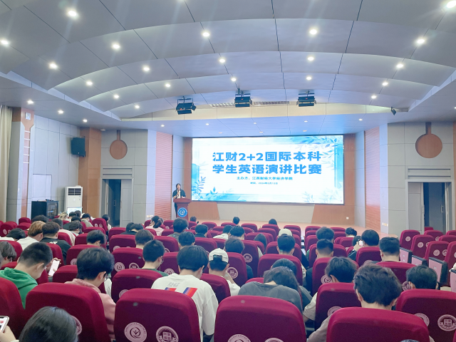 2024年5月10日晚,“江财2+2国际本科学生英演讲比赛”在江西财经大学枫林园青云楼一楼报告厅成功举办,经济学院2022级和2023级“2+2”国际本科项目的同学参加。
