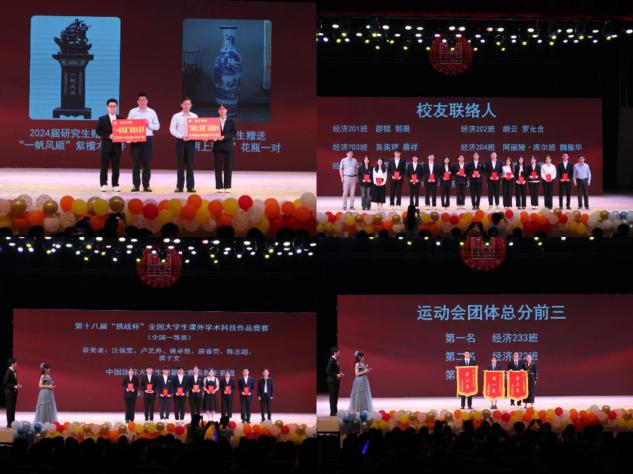 本次晚会还设置了为校运动会团体总分前三名的班级、第十八届“挑战杯”全国大学生课外学术科技作品竞赛全国一等奖、中国国际大学生创新大赛高教主赛道全国金奖的颁奖仪式,以及令人激动人心的抽奖环节。