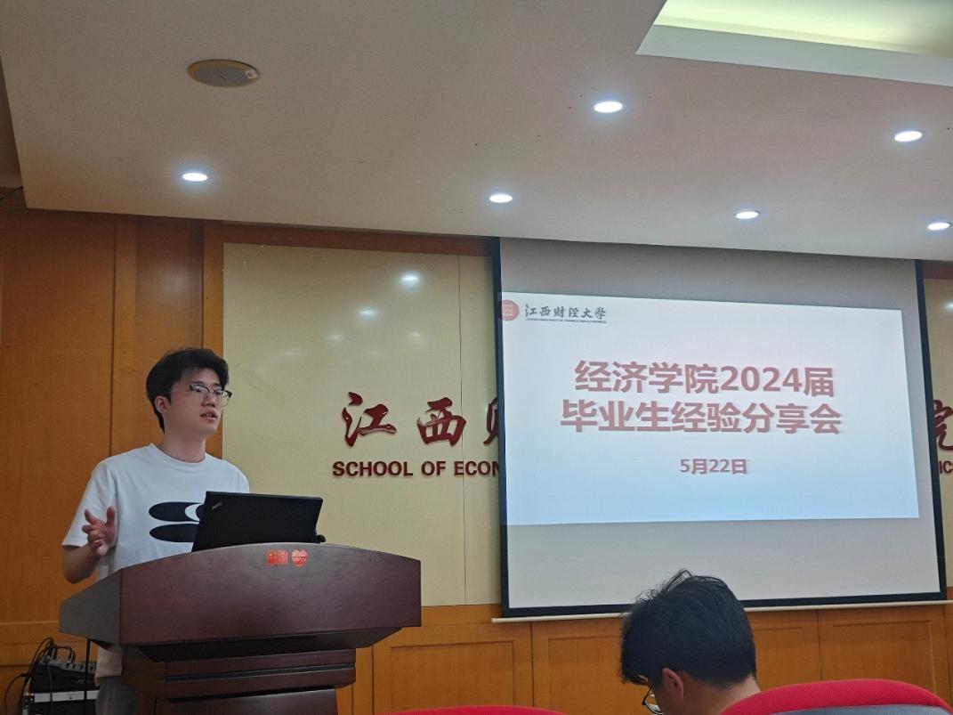 为进一步帮助学生了解考公、考研、就业等相关信息,让即将步入大四的同学们进一步明晰方向,5月22日下午,经济学院于北综718召开2024届毕业生经验分享会。20级优秀毕业生范斌、吴丽文、曾德沉、王中兰、陈婷、蔡祥从自身实际出发,为各位同学展开分享。