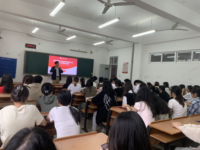 在新余学院,杨飞虎向与会学子介绍了江西财经大学和经济学院概况,分析了我院的学科优势和培养特色,对近几年我院各学科招生形势及态势进行了剖析。并应同学们请求,建立新余学院经济管理学院考生服务微信群。杨飞虎承诺后续会针对同学们问题进行及时反馈,鼓励大家树立信心、积极备考、力创佳绩。