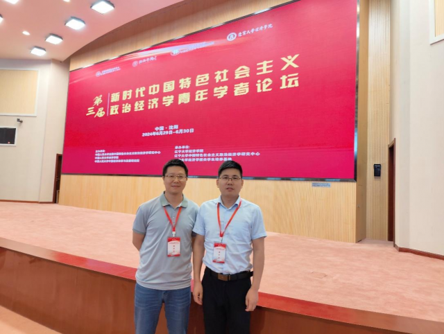 2024年6月29-30日,由中国人民大学全国中国特色社会主义政治经济学研究中心、中国人民大学经济学院、中国人民大学中国经济改革与发展研究院主办,辽宁大学经济学院、辽宁大学中国特色社会主义政治经济学研究中心、辽宁大学经济学拔尖学生培养基地承办的“第三届新时代中国特色社会主义政治经济学青年学者论坛”在辽宁大学成功举行。来自中国人民大学、北京大学、清华大学、南京大学、复旦大学、江西财经大学、南开大学、四川大学、吉林大学、上海财经大学、西南财经大学、中央财经大学、西北大学、辽宁大学等50余所高校和研究机构的院长及青年专家学者围绕最新的政治经济学理论前沿问题进行了深入的交流。作为30所共同主办单位之一,我院彭继权副教授和孙广召博士参加了此次会议。