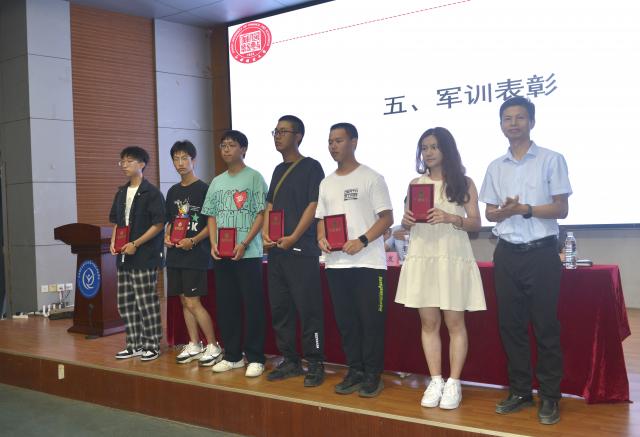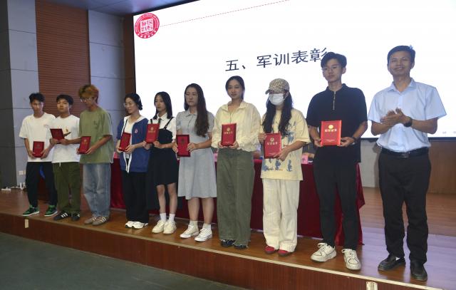 远翠平副书记读关于2024年军训表彰先进集体、优秀个人的决定。首先,表扬了各部门的合力协作及工作效果;其次,肯定了学子们在军训期间的卓越表现,最后她指出,希望2024级全体新生向优秀看齐,奋起直追。