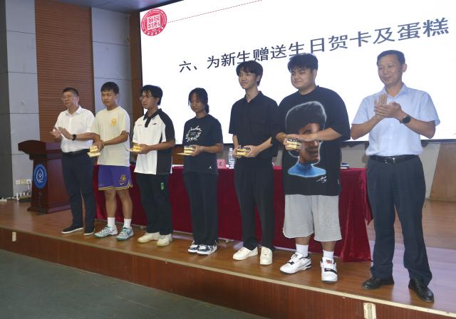 张利国院长和邹春发书记为九月生日的新生赠送生日贺卡及蛋糕。