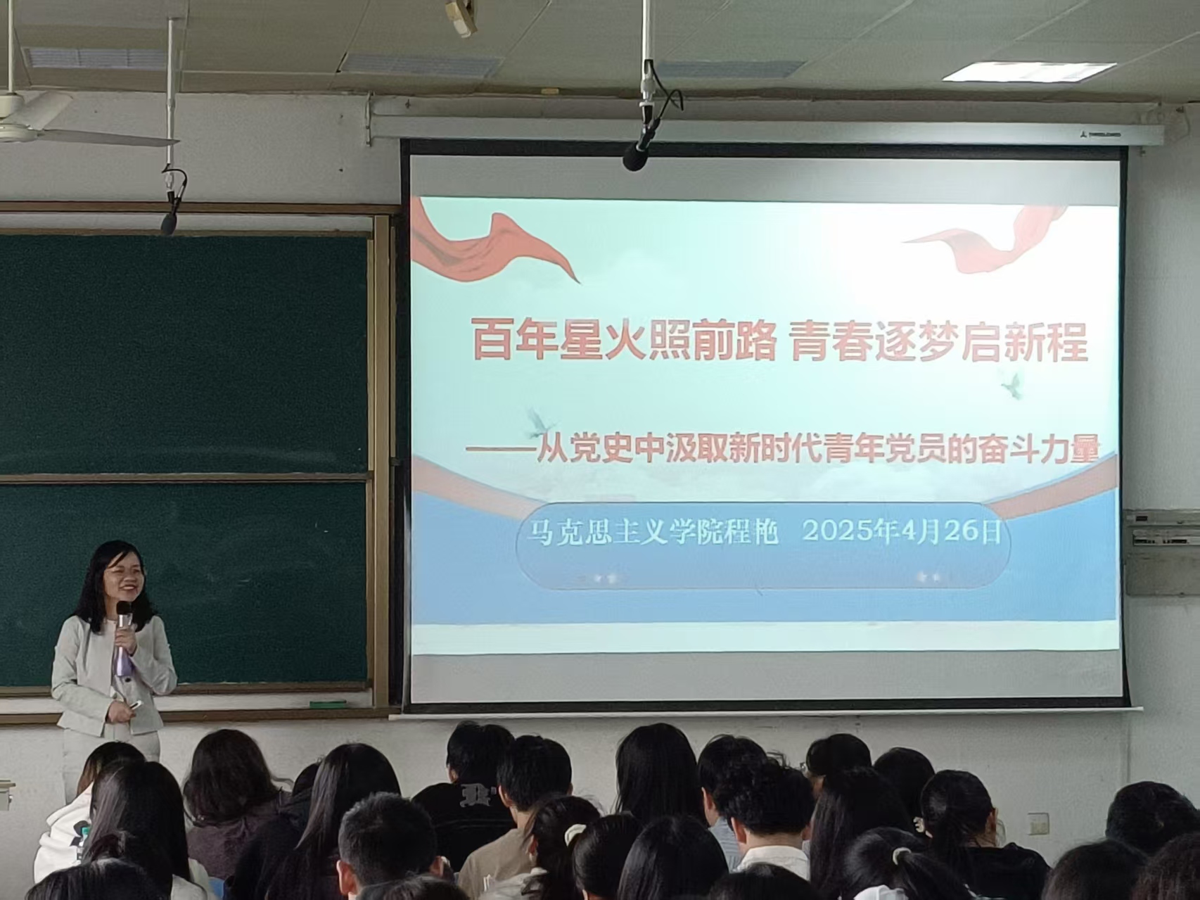 为引导入党积极分子从百年党史中汲取奋进力量,明确新时代使命担当,经济学院于2025年4月26日在1102教室开展了第26期分党校入党积极分子培训班党课第三讲,此讲由江西财经大学中特中心副主任,硕士生导师程艳讲授,主题为“解码百年党史中的‘青春密码’,新时代青年党员的使命与担当”。
