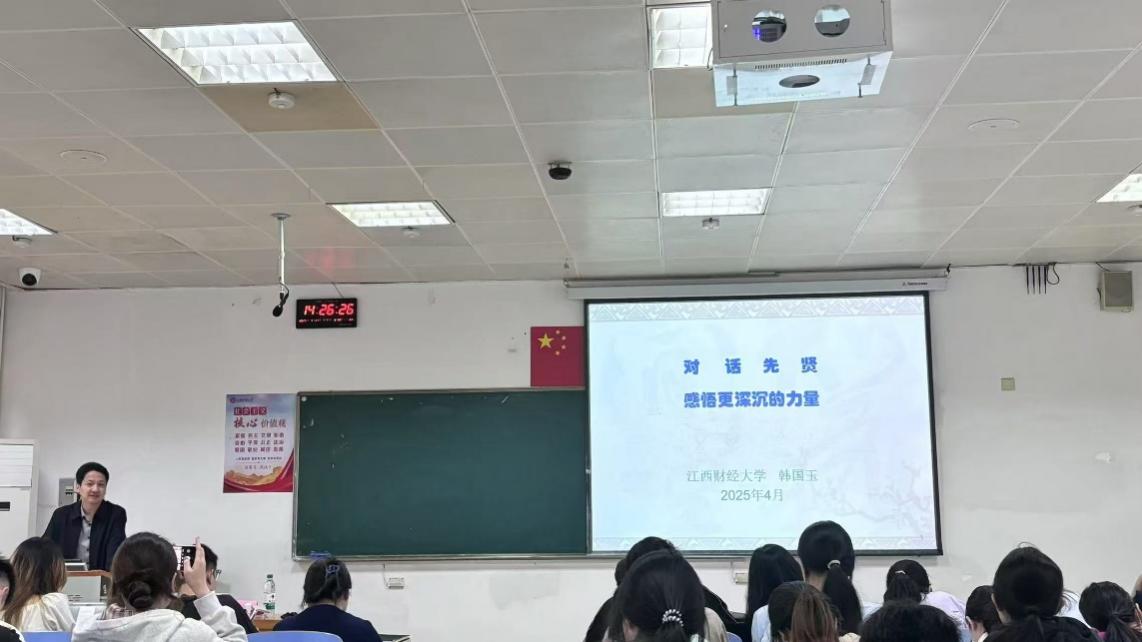 为弘扬中华优秀传统文化,汲取先贤智慧与精神力量,第26期分党校入党积极分子培训班党课第五讲于2025年4月27日在江西财经大学北区五教5222进行。校党委常委、宣传部部长韩国玉开展了题为“对话先贤,感悟更深沉的力量”的党课。通过与先贤的对话,学员不仅对历史有了更深刻的认识,而且在思想上受到了一次深刻的洗礼。