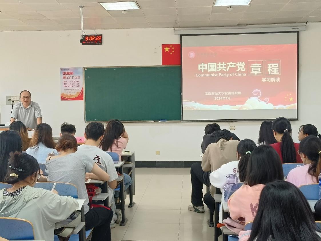 为深入学习贯彻党的二十大精神,推动全党对新修订党章的深刻理解和实践应用,2025年5月17日上午,经济学院第二十六期入党积极分子培训班第八讲在第五教学楼顺利进行,校党委常委、组织部部长徐翔担任主讲,党课的主题是“新党章学习解读”。