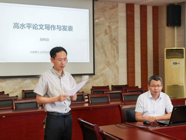 2025年6月5日下午,江西理工大学经济管理学院副院长郑明贵教授应邀莅临我院讲学,作题为“高水平论文写作与发表”的学术讲座。讲座由副院长曾永明教授主持,来自院内外30余名师生来参加本次讲座。