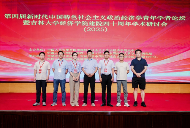 2025年6月28-29日,由中国人民大学全国中国特色社会主义政治经济学研究中心、中国人民大学经济学院、中国人民大学中国经济改革与发展研究院主办,吉林大学经济学院、吉林大学中国特色社会主义政治经济学研究中心、吉林大学中国国有经济研究中心承办的“第四届新时代中国特色社会主义政治经济学青年学者论坛暨吉林大学经济学院建院四十周年学术研讨会”在吉林大学成功举行。来自中国人民大学、北京大学、南京大学、复旦大学、南开大学、四川大学、吉林大学、辽宁大学、上海财经大学、西南财经大学、中央财经大学、西北大学、江西财经大学等60余所高校和研究机构的青年专家学者围绕最新的政治经济学理论前沿问题进行了深入的分享交流。作为30所共同主办单位之一,我院彭继权、孙广召、王荣、王志高、徐慧等老师和肖晴川博士生、《当代财经》杂志社王俊杰研究员参加了此次会议。