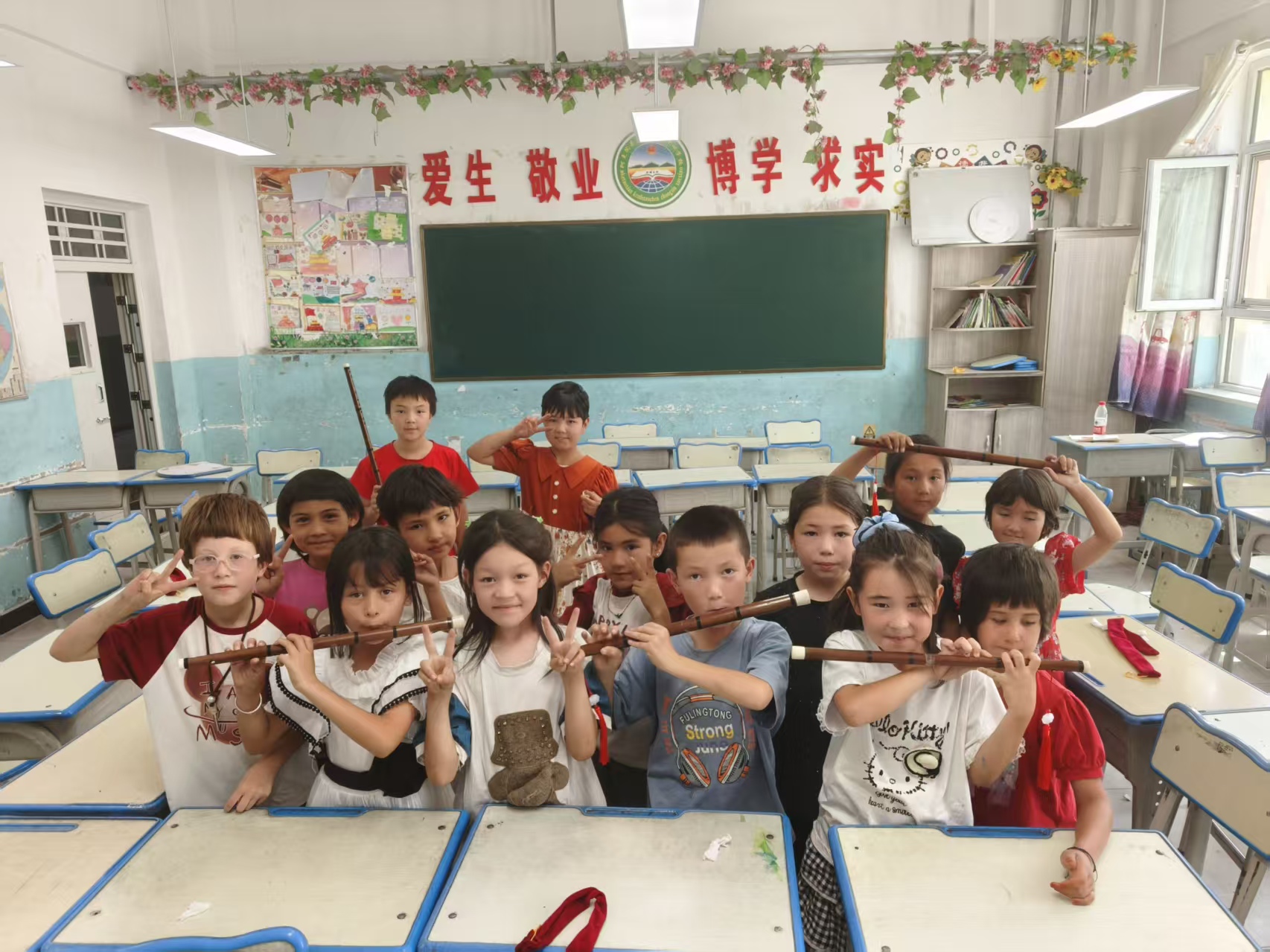 “我和我的祖国,一刻也不能分割......”音乐教室里传来阵阵稚嫩的歌声。在歌曲课上,孩子们用清澈的嗓音唱响《我和我的祖国》《如愿》等红色歌曲。竹笛课上,虽然吹奏技巧还不熟练,但孩子们认真练习《青花瓷》等曲目的模样格外动人。书法教室内,孩子们手握毛笔,一笔一划地书写着民族团结四个大字。饱含着孩子们对民族团结最纯真的理解。